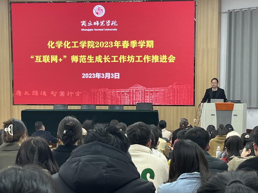 3月3日下午,公司于睢阳校区物电报告厅开展了2023年春季学期“互联网+”师范生成长工作坊工作推进会。副经理王涛,化学系主任韦秀华、副主任董辉,17位工作坊坊主以及2020级化学(师范)专业全体学员参加了本次会议。