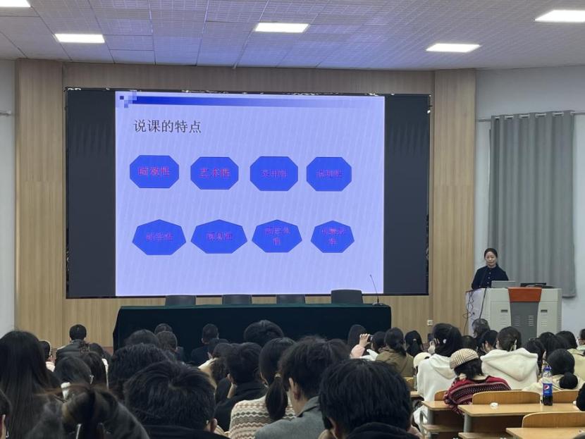 会上,商丘市回民中学侯震虹老师为全体师生做了《如何说好一节课》的专题讲座。侯老师从为什么要说课、什么是说课及如何说好课三个方面进行介绍。从教材分析、学情、教法和学法、教学过程、板书设计等几个部分详细讲解了“如何说”。之后展示了优秀的说课案例,与员工们一起分析案例中的亮点和不足,加深员工对说课技巧的理解。