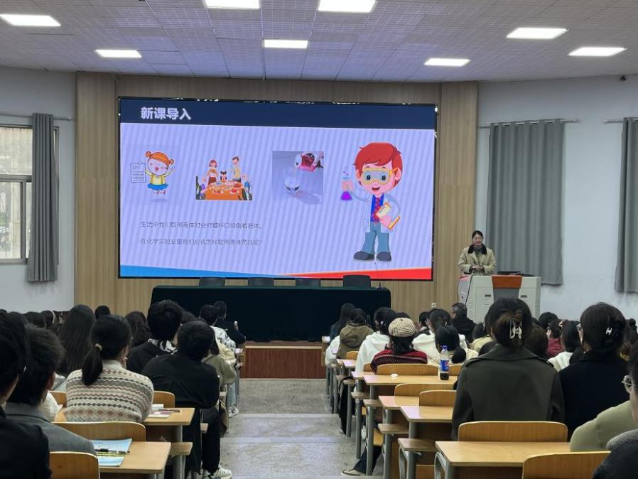 随后,2019级化学专业员工朱丽敏展示了一节微型课。商丘市教体局基础教研室教研员李文静老师进行了精彩点评,在充分肯定朱丽敏同学教学综合素质的同时,对教学设计、教学内容、表达技巧等方面提出了改进建议。