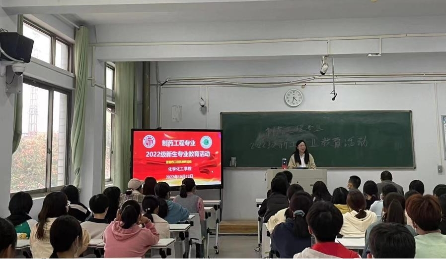 为做好2022级制药工程专业大一新生入学教育、专业认知,促进大一新生更好更快的融入老员工活,10月12日,制药工程系在睢阳校区1号教学楼309教室采取线上线下相结合的方式开展2022级新生专业教育活动。科研处处长刘澜涛、副经理王涛、副主任张明亮、制药工程系全体教师和2022级制药工程专业全体员工参加活动。活动由制药工程22-1班班主任高媛媛主持。