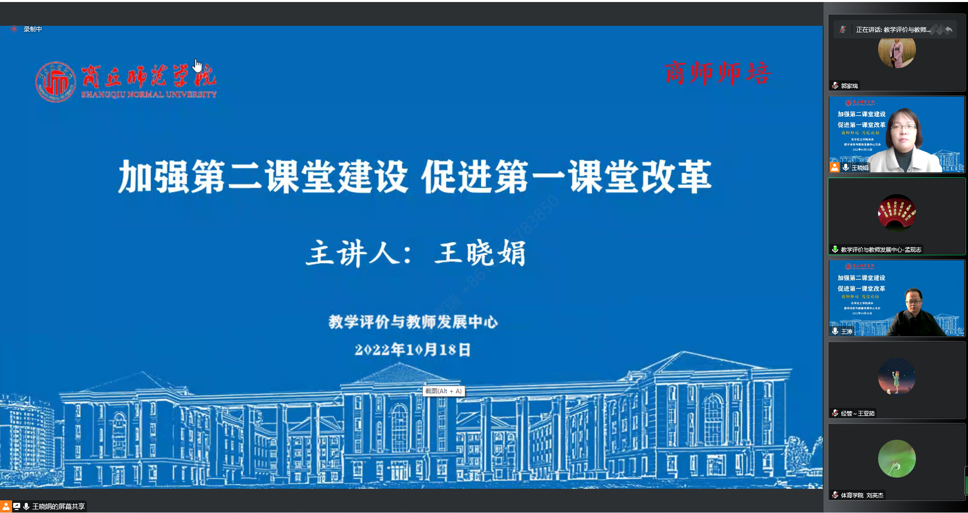 10月18日,由教学评价与教师发展中心主办、beats365唯一官方网站承办的“笃信论坛”通过腾讯会议进行线上直播。公司王晓娟老师做了题为《开展第二课堂建设,促进第一课堂改革》的主题分享,论坛由副经理王涛主持。