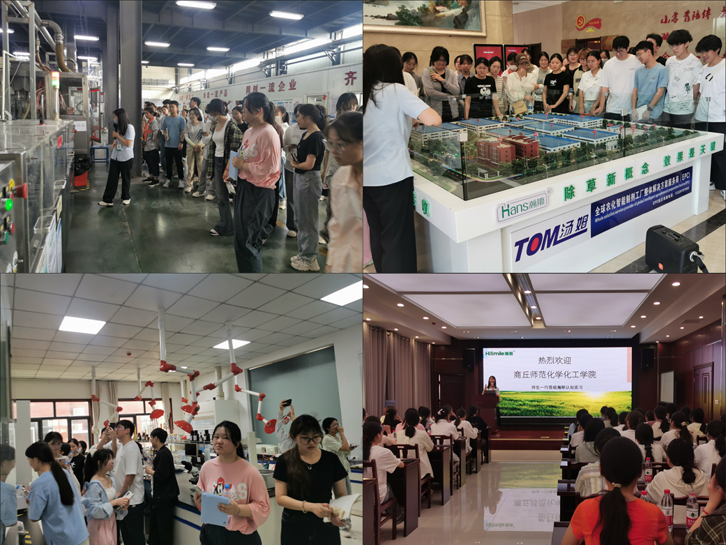 认知实习第一站——河南瀚斯农作物保护有限公司。由公司工作人员为同学们讲解化工安全知识和入厂安全教育;随后在公司工作人员及老师带领下进行厂区参观,详尽了解了企业岗位设置、工序设备、生产流程、技术研发等。最后同学们观看公司专题片,学习公司概况、企业文化,并与企业人员进行交流。
