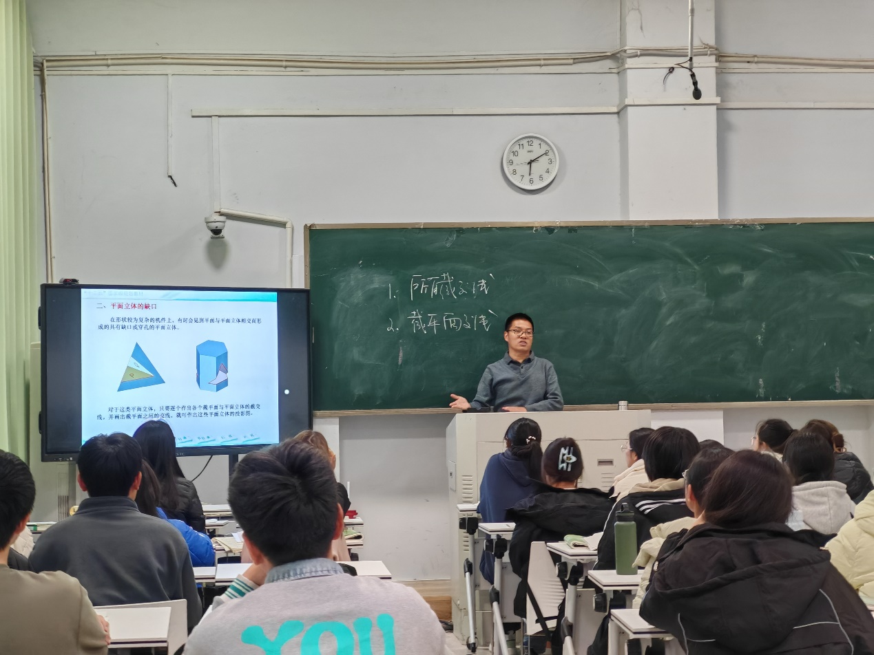 11月25日周一下午第7节,刘双老师主讲的《工程制图》范式改革公开课在文化路校区1号教学楼103教室进行。副经理王涛和部分新进教师参加了观摩活动。