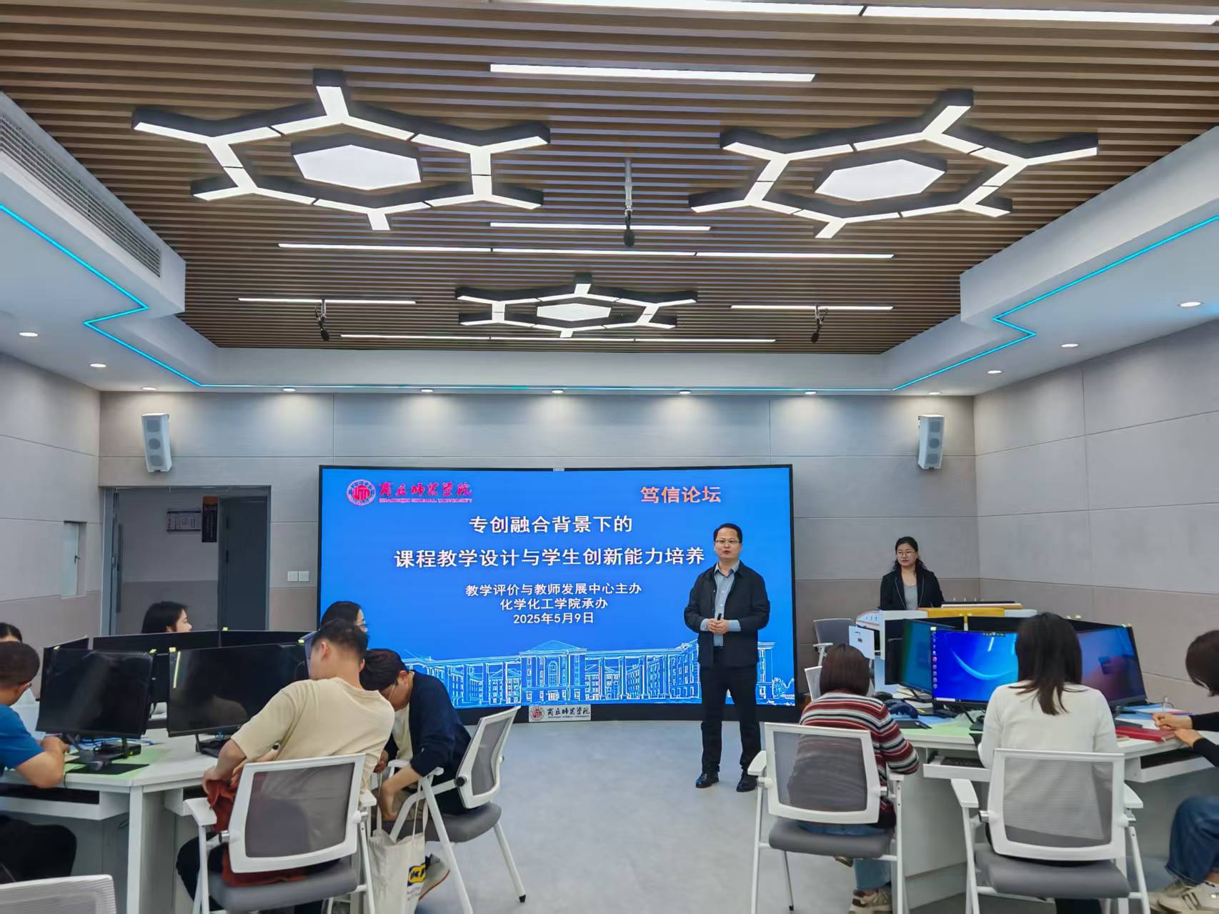 2025年5月9日,由教学评价与教师发展中心主办、beats365唯一官方网站承办的“笃信论坛”在睢阳校区工科实训楼北楼B-310室举行。beats365唯一官方网站于丽敏老师以《专创融合背景下的课程教学设计与员工创新能力培养》为题作分享,论坛由副经理王涛主持。
