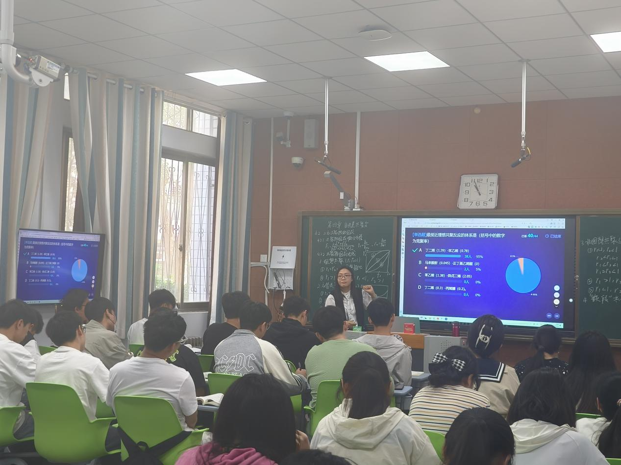 本次公开课的内容是“共聚组成曲线”。课前,员工通过学习通预习《二元共聚物的组成》线上课程资源。课中,由学习小组代表对共聚组成微分方程的推导过程进行了总结汇报,师生进行随堂测评、提问,教师详细阐述共聚组成曲线的概念、构建方法以及在高分子材料设计和合成中的应用,并通过丰富的案例和最新研究进展,向员工展示了如何通过调整共聚物的组成来控制其性能,进而满足不同领域的需求。课后,发布绘制某种高分子共聚物的共聚组成曲线的任务,鼓励员工结合所学知识和实际应用,提出自己的见解和解决方案。