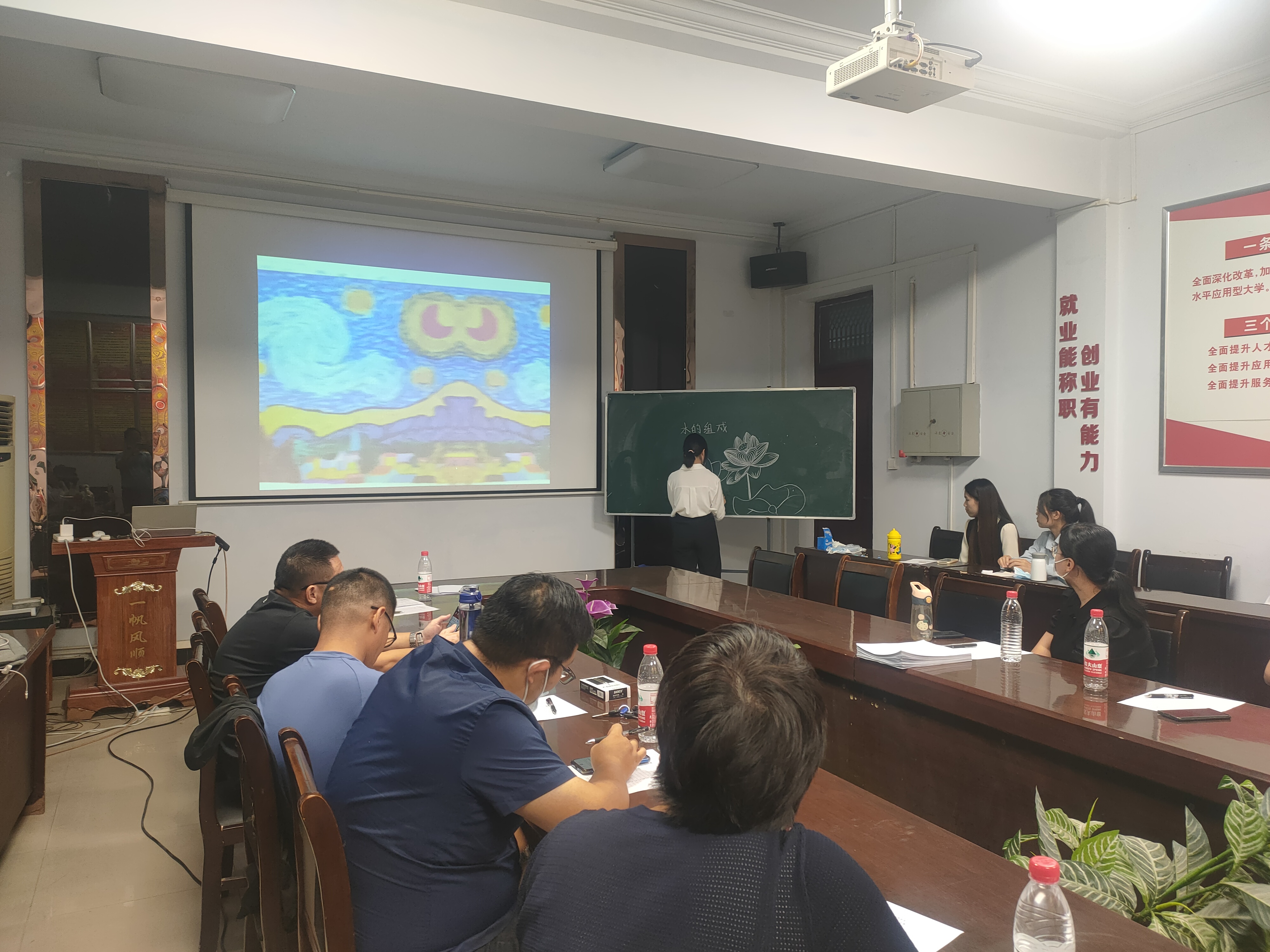 本次比赛共设置3个环节,分别为说课、答辩、才艺展示。比赛前,参赛选手准备工作已完成,精神状态良好。比赛过程中,选手们在说课环节使用粉笔板书教学提纲,充分体现了其粉笔字的深厚功底;在答辩环节,选手们根据说课内容及自身知识储备和经验,流畅地回答评委老师提问的问题,评委老师也对参赛选手的教学设计、教学方法、教学内容、教学理念等方面表示肯定和赞扬;在最后的才艺展示环节,选手们选择了器乐演奏、舞蹈、朗诵、绘画等方面的技能进行展示,充分展示了当代老员工的艺术风采及良好精神风貌。