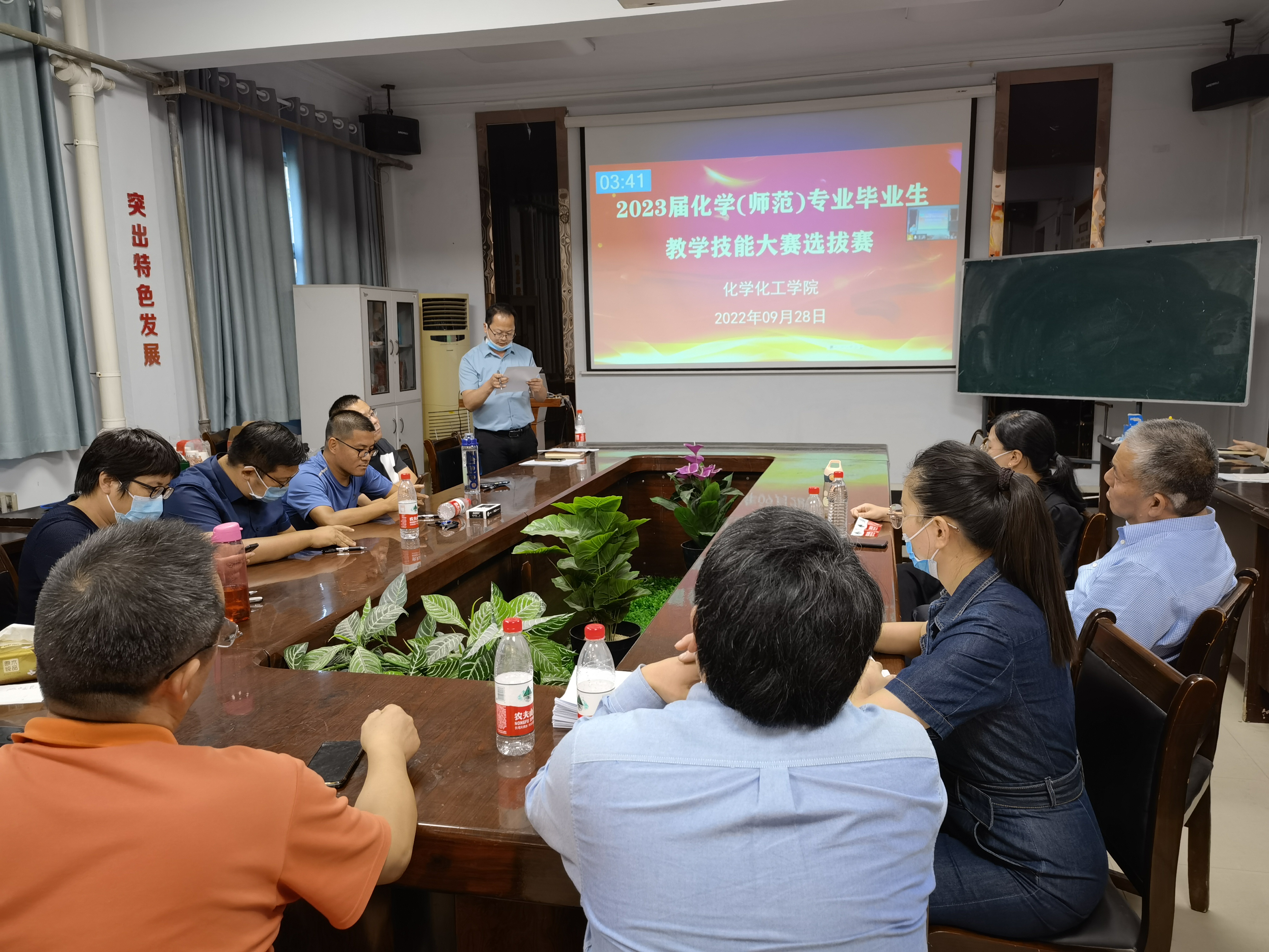 为加强公司化学专业教育实习工作,切实提高化学师范生教学技能,选拔优秀选手参加河南省第二十届师范教育专业毕业生教学技能大赛,学院于9月28日在7号楼103会议室举行了2023届化学(师范)专业毕业生教学技能大赛选拔赛。全体校内教育实习指导老师、参赛选手、化学(全免)师范生参加了本次选拔赛,活动由副经理王涛主持。