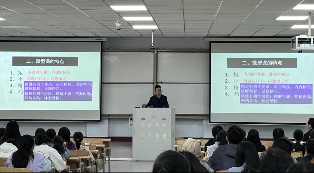 接着吕帅老师进行了《如何上好微型课》的专题讲座。吕老师从什么是微型课,微型课的特点,微型课与说课、微课的区别,如何讲好微型课,微型课要注意的细节等方面进行阐述。并通过播放往年优秀微型课教学案例视频,与同学们一起分析案例中的亮点和不足,加深员工对微型课讲课技巧的理解。
